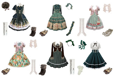 Then we move into the "other greens" with the mint version of Innocent World's Annette print. I felt having a lighter green piece in a more country vibe gave the wardrobe a much needed lift, but it was also possibly too much of a sweet choice.